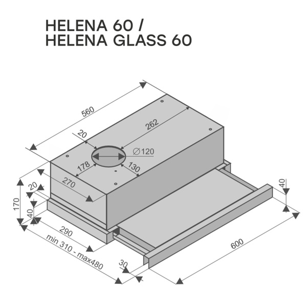 Описаниевытяжка встраиваемая телескопическая, 60 см, 450 м/ч, черный