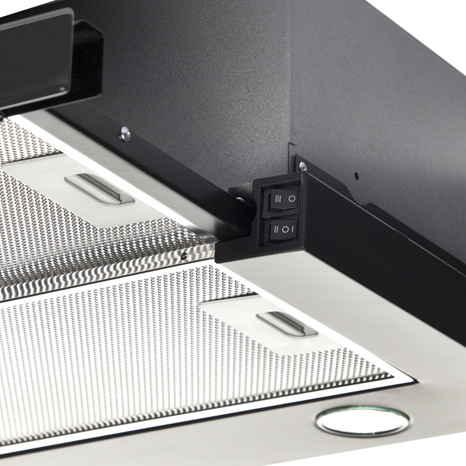 Описаниевытяжка встраиваемая телескопическая, 60 см, 650 м/ч, черный/передняя панель черное стекло