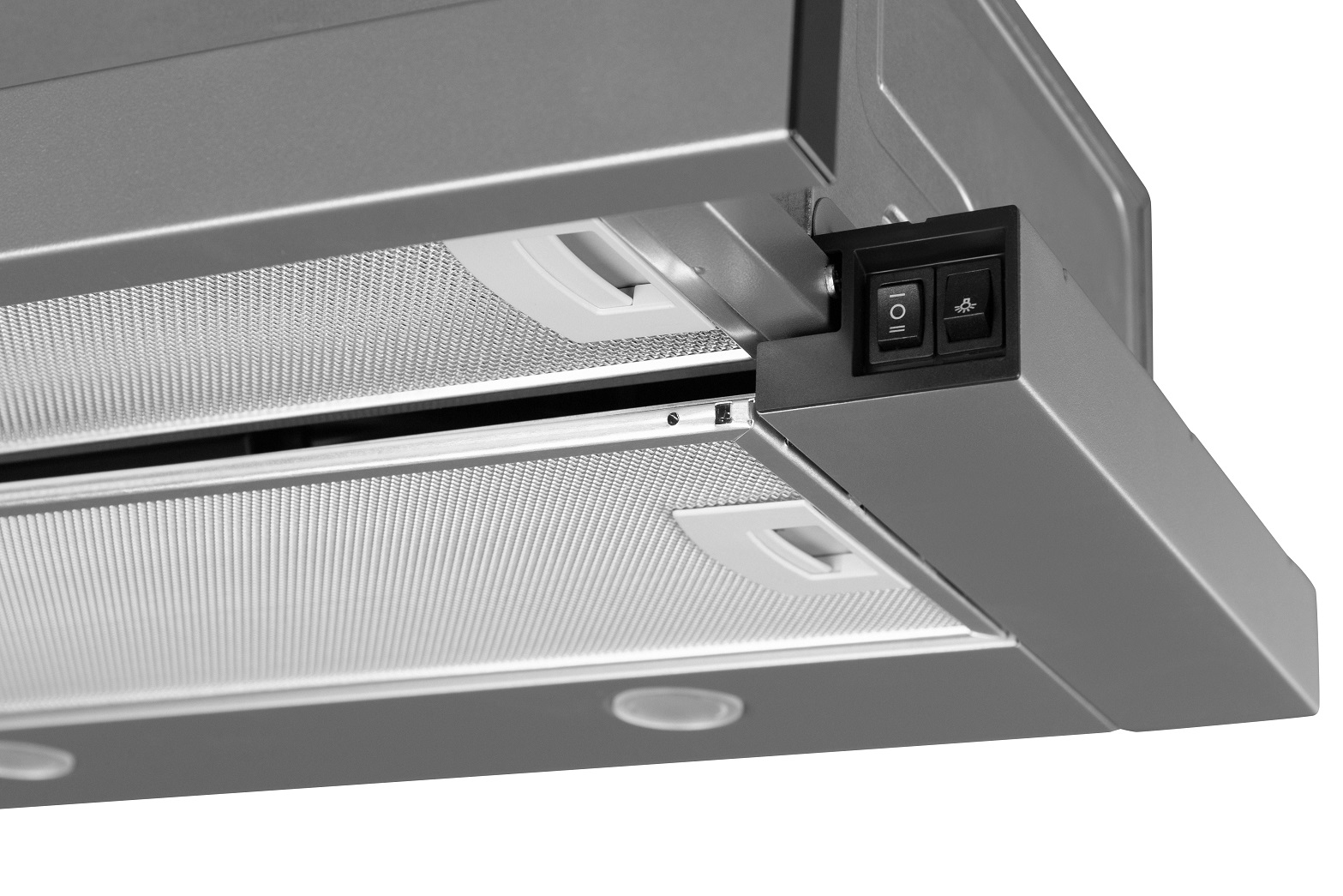 Описаниевытяжка встраиваемая телескопическая, 60 см, 650 м/ч, серый металлик эмаль