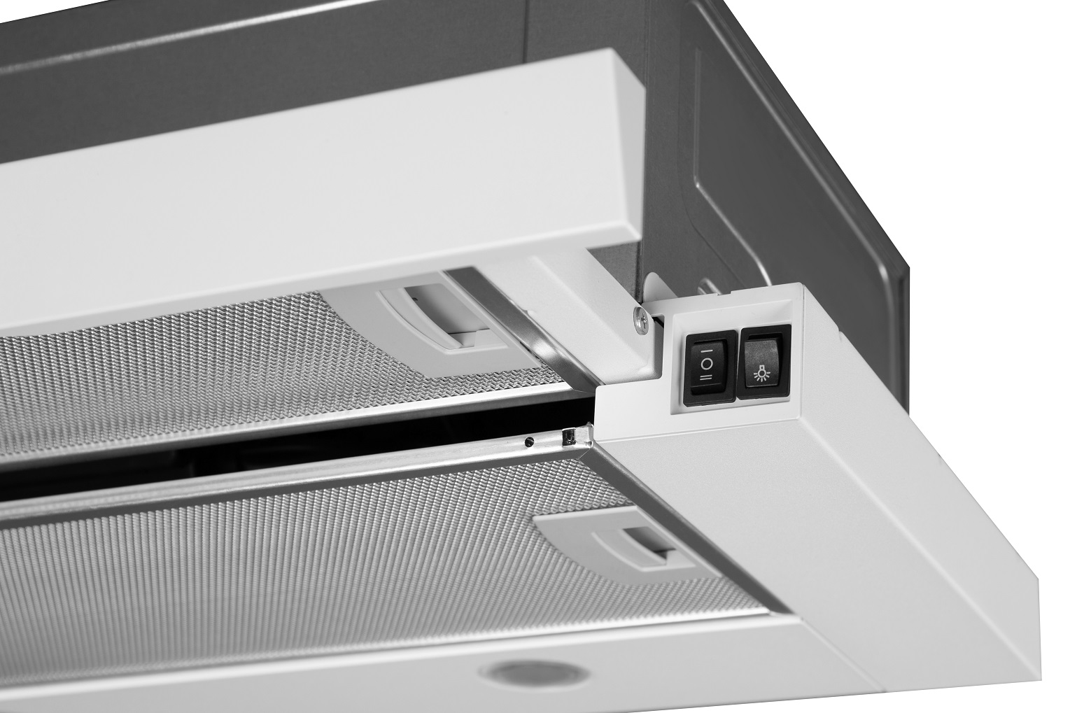 Описаниевытяжка встраиваемая телескопическая, 60 см, 650 м/ч, белый/передняя панель белый глянец
