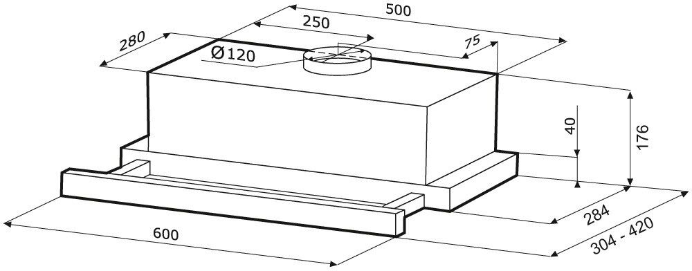 Описаниевытяжка встраиваемая телескопическая, 60 см, 490 м3/ч, черный