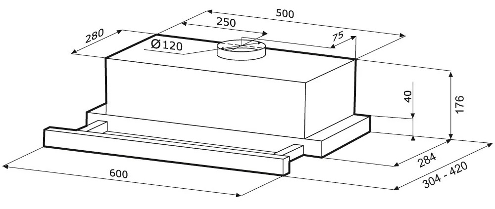 Описаниевытяжка встраиваемая телескопическая, 60 см, 490 м3/ч, нержавеющая сталь