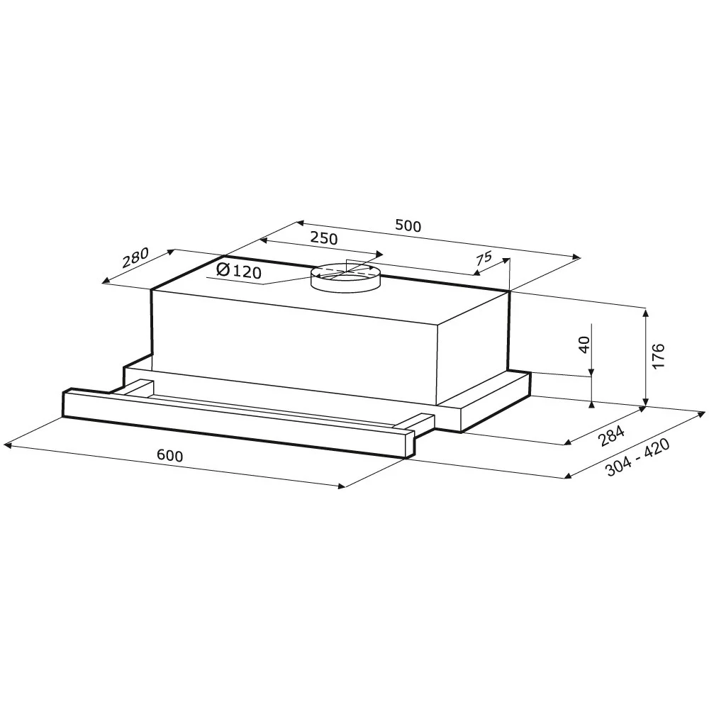 Описаниевытяжка встраиваемая телескопическая, 60 см, 490 м3/ч, белый