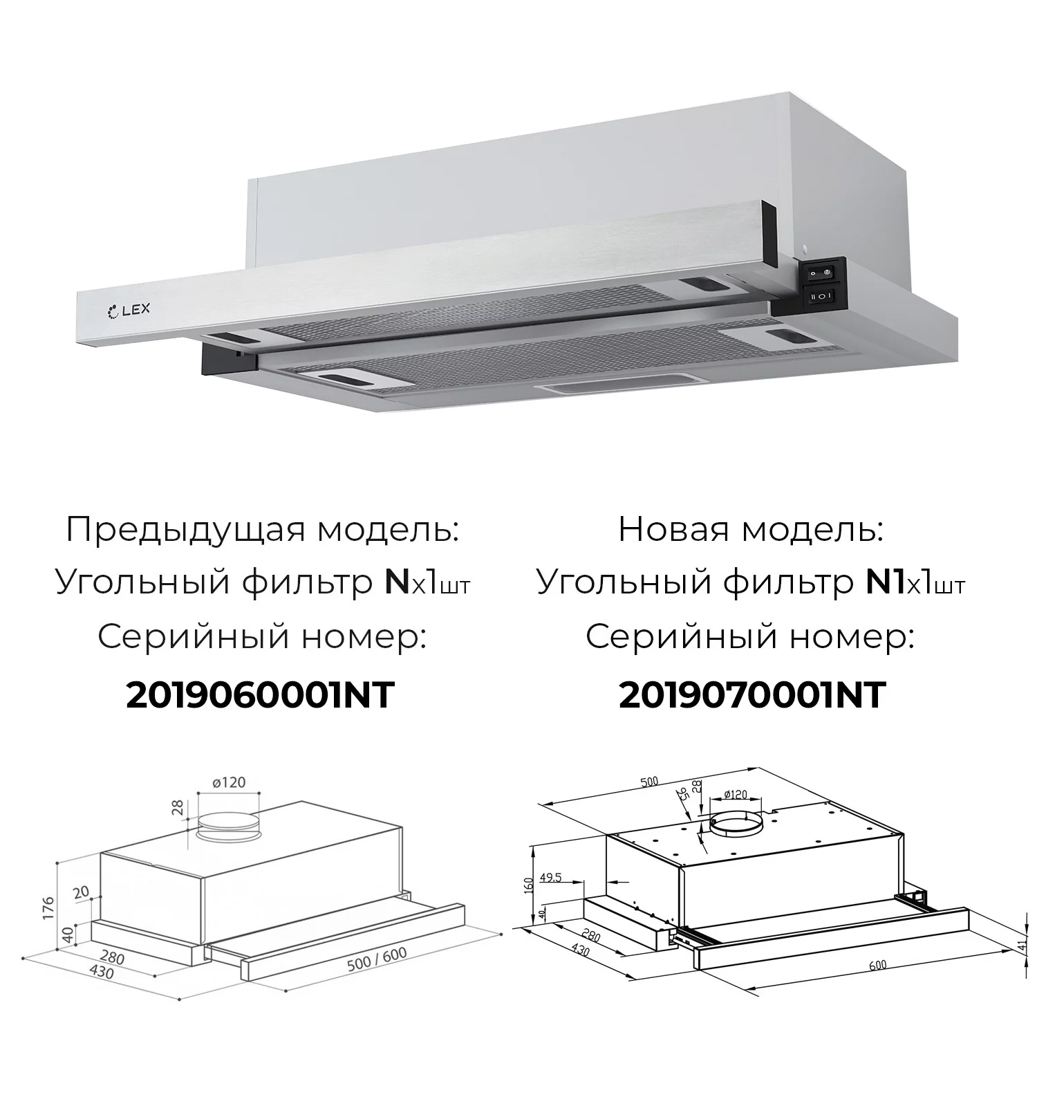 LEX HUBBLE 600 INOX Вытяжка телескопическая