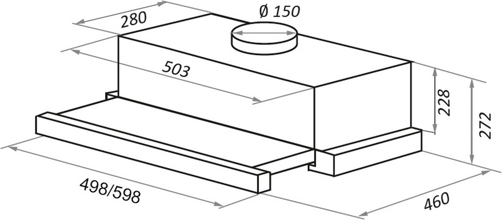 Описаниевытяжка встраиваемая телескопическая, 50 см, 1000 м3/ч, белый