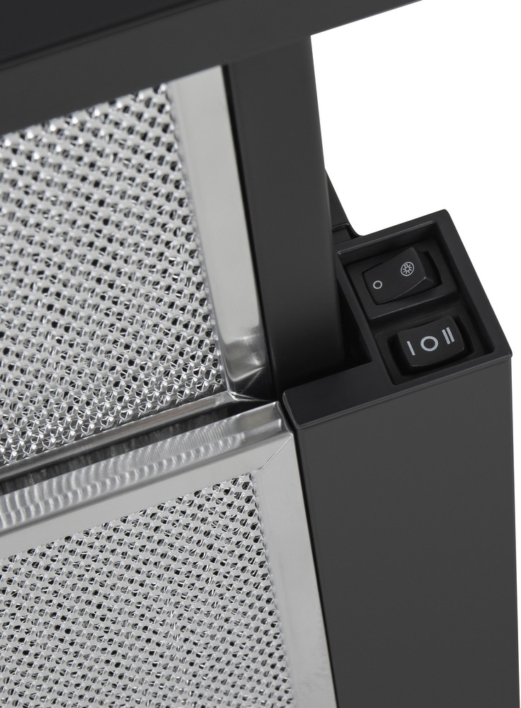 Описаниевытяжка встраиваемая телескопическая, 60 см, 850 м3/ч, черный