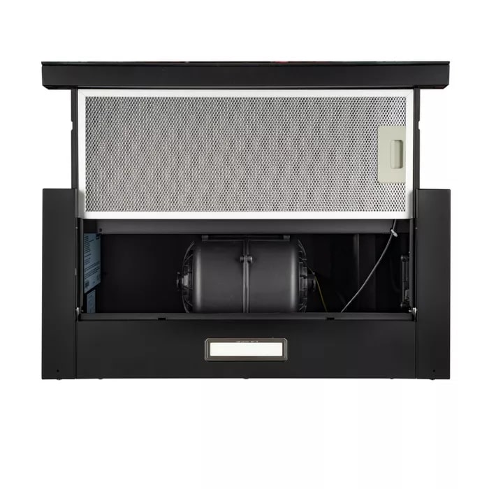 Описаниевытяжка встраиваемая телескопическая, 60 см, 850 м3/ч, черный/передняя панель черное стекло