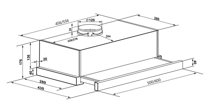Описаниевытяжка встраиваемая телескопическая, 60 см, 420 м3/ч, белое стекло