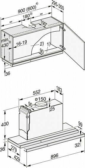Описаниевытяжка встраиваемая телескопическая, 90 см, 720 м3/час, черный