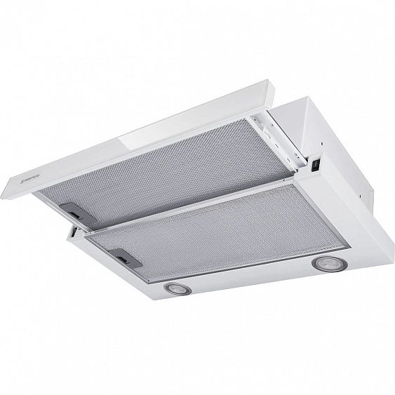 Описаниевытяжка встраиваемая телескопическая, 60 см, 850 м3/ч, белый/передняя панель белое стекло