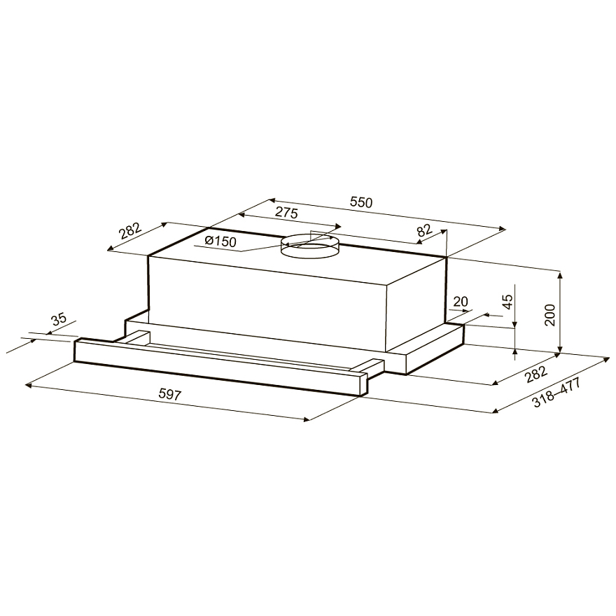Описаниевытяжка встраиваемая телескопическая, 60 см, 1100 м3/ч, белый