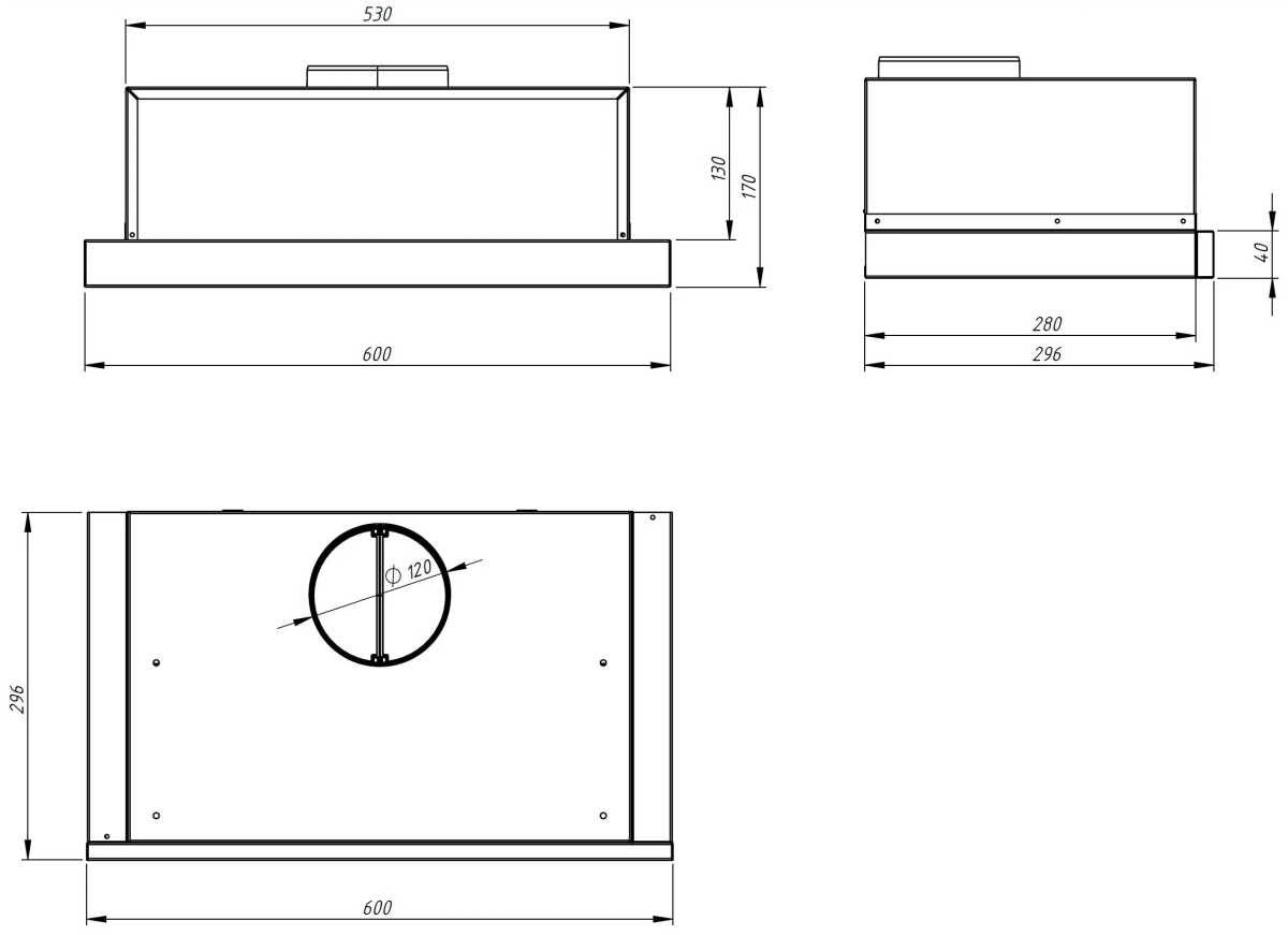 Описаниевытяжка встраиваемая телескопическая, 60 см, 1080 м3/ч, черный