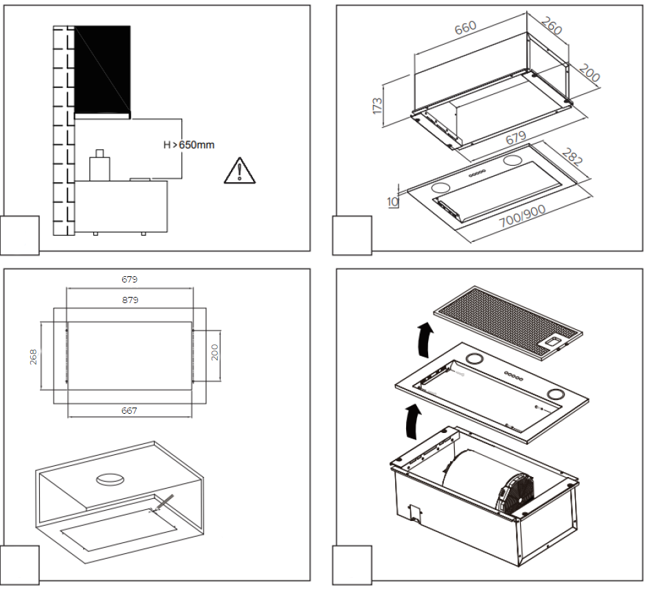 Описаниевытяжка встраиваемая телескопическая, 60 см, 850 м3/ч, нержавеющая сталь