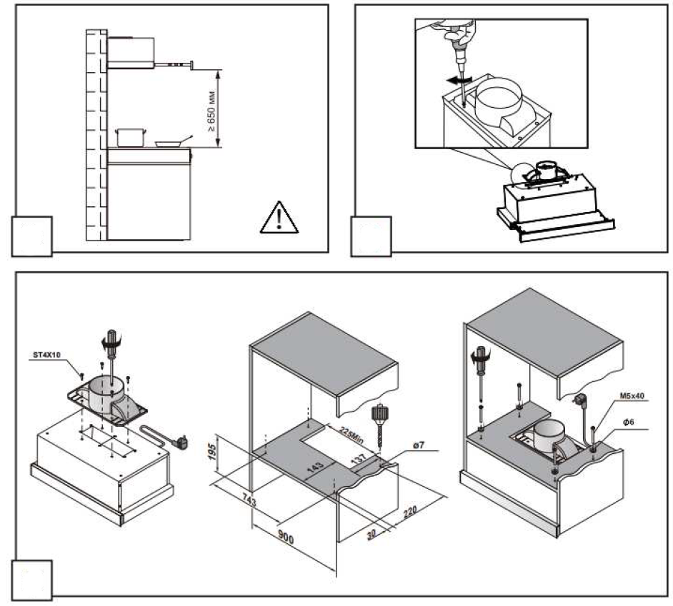 Описаниевытяжка встраиваемая телескопическая, 90 см, 900 м3/ч, черный