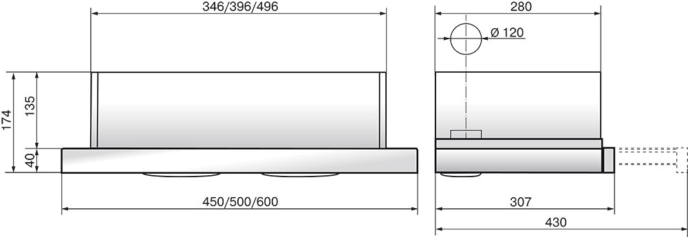 Описаниевытяжка встраиваемая телескопическая, 45 см, 400 м3/ч, нержавеющая сталь/стекло бежевое