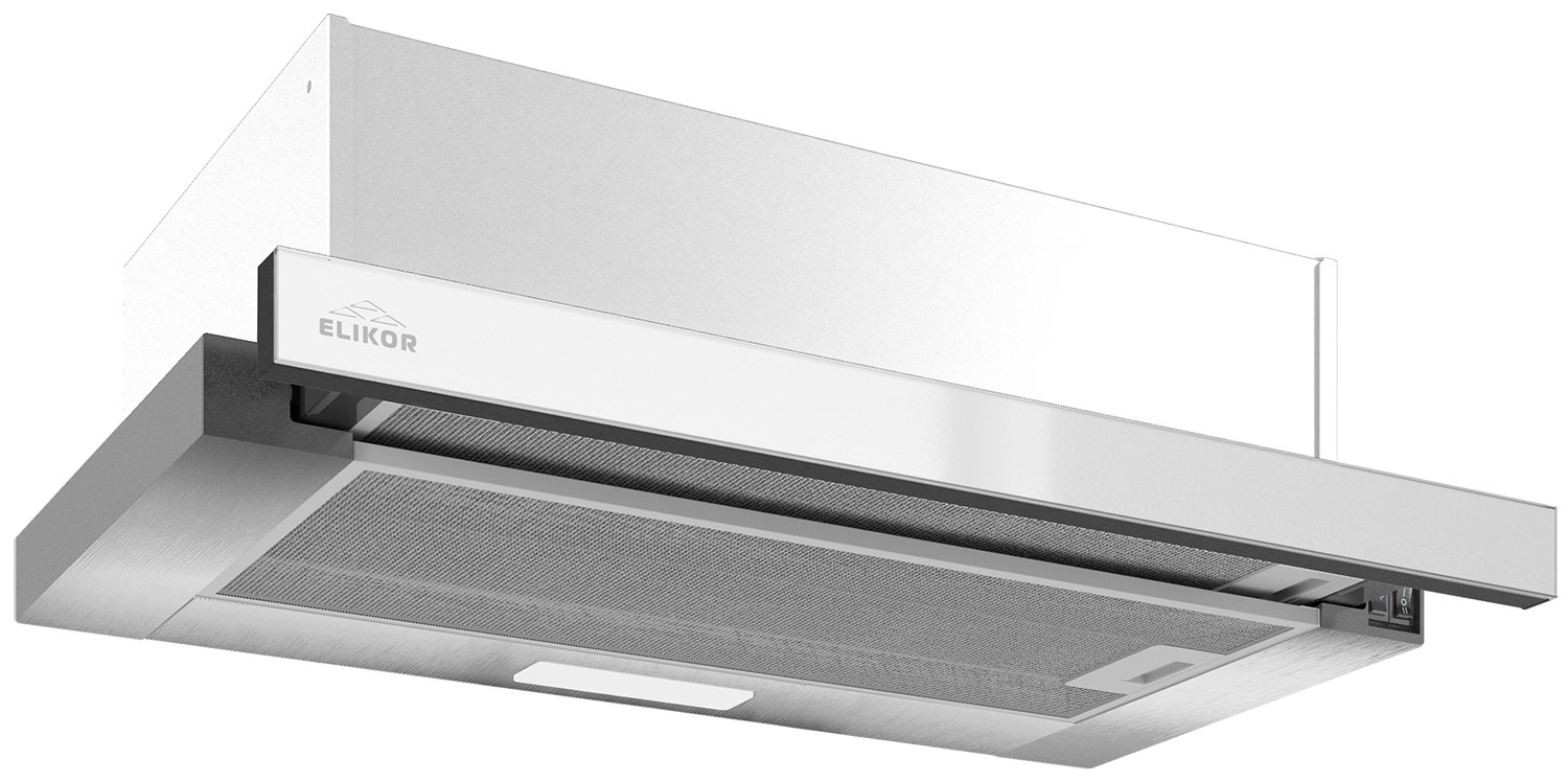 Описаниевытяжка встраиваемая телескопическая, 45 см, 400 м3/ч, нержавеющая сталь/стекло белое