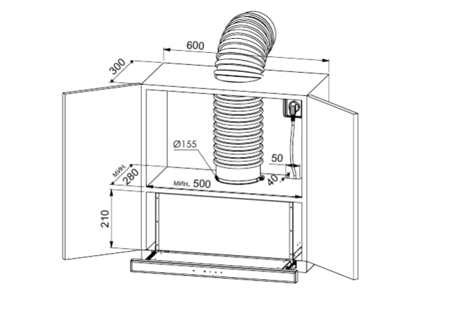 Описаниевытяжка встраиваемая телескопическая, 60 см, 850 м3/час, белый/передняя панель белое стекло