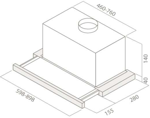 Описаниевытяжка встраиваемая телескопическая, 60 см, 650 м3/ч, белое стекло