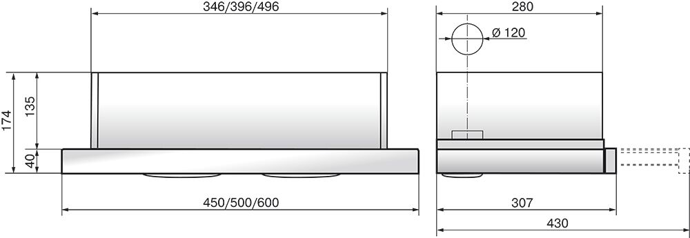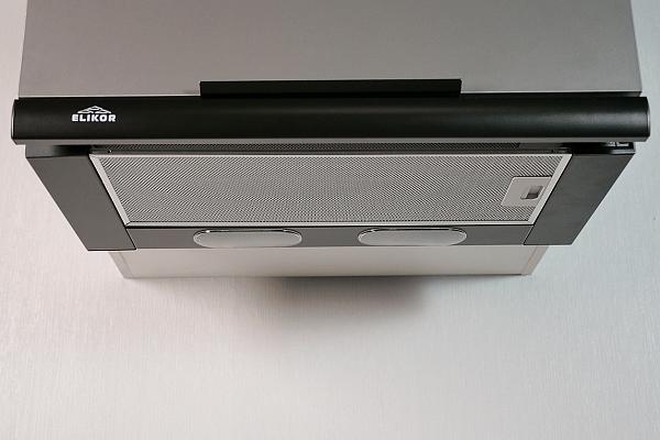 Описаниевытяжка встраиваемая телескопическая, 45 см, 400 м3/ч, черный/черный