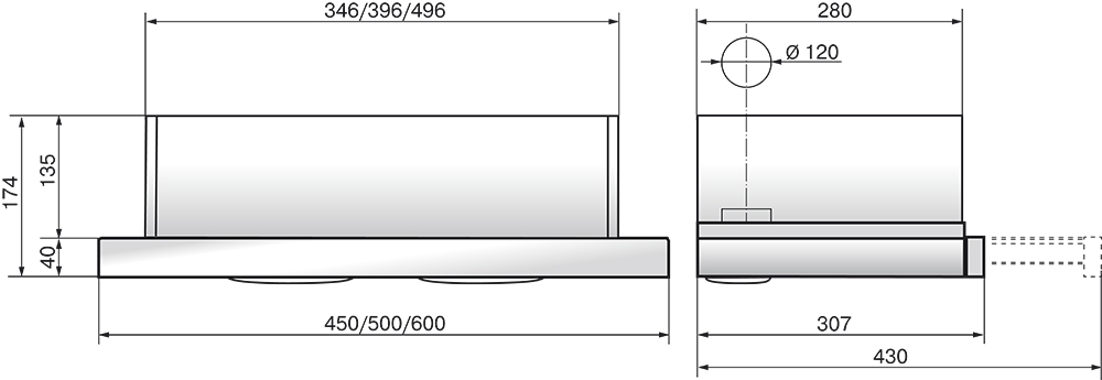 Описаниевытяжка встраиваемая телескопическая, 50 см, 400 м3/ч, черный/нержавеющая сталь