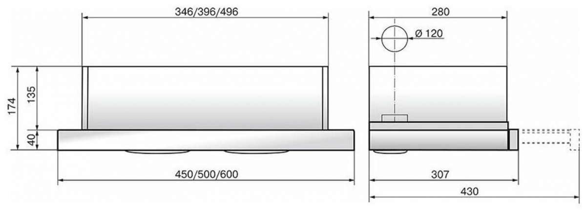 Описаниевытяжка встраиваемая телескопическая, 60 см, 400 м3/ч, белый/белый