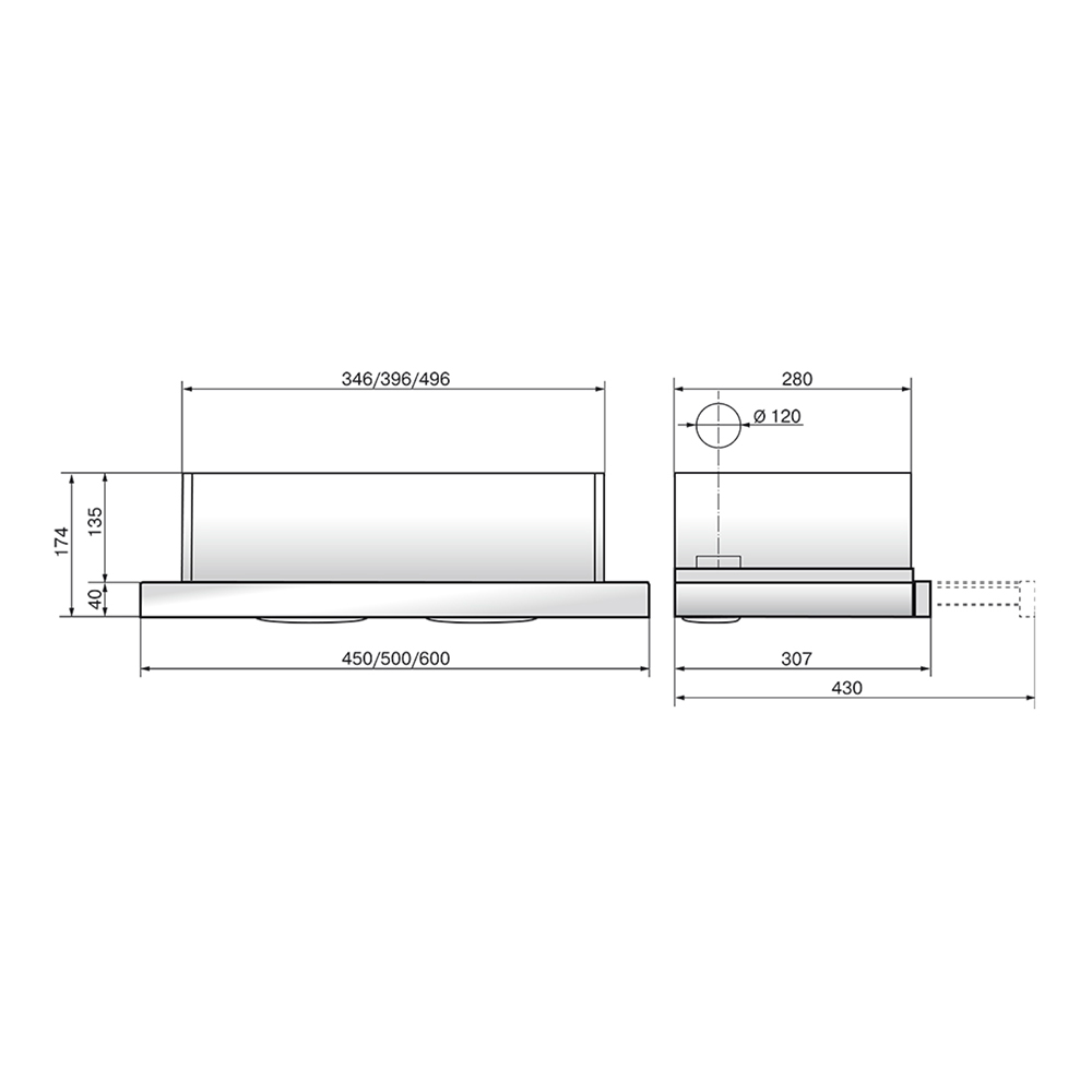 Описаниевытяжка встраиваемая телескопическая, 60 см, 400 м3/ч, черный/черный