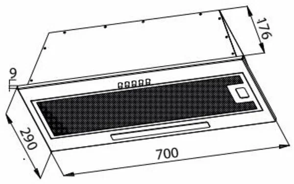 Описаниевытяжка встраиваемая в подвесной шкаф, 70 см, 860 м3/ч, черный