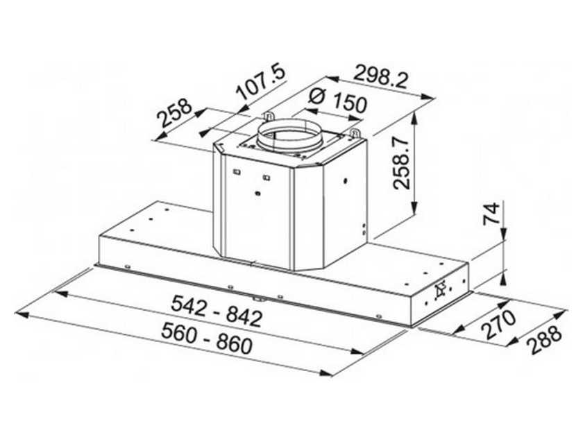 Описаниевытяжка встраиваемая в подвесной шкаф, 56 см, 1050 м3/ч, нержавеющая сталь/черное стекло