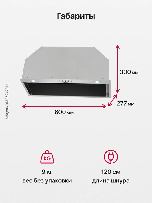 Размер (Высота) 30 см Размер (Глубина) 27,7 см Размер (Ширина) 60 см Цвет нержавеющая сталь Ширина прибора 51 - 60 см Управление механическое Таймер нет Фурнитура нет Гарантийный срок (месяцы) 12 Страна производитель Китай Ссылка на сайт производителя https://www.hansa.ru/catalog/vytyazhki/omp6242bih/?ysclid=ldjztpk75x987795071 Количество скоростей 3 Максимальный уровень шума 59 дБ Производительность 500 куб.м/час Тип вытяжки встраиваемая Тип монтажа в подвесной шкаф Пульт дистанционного управления нет Освещение LED лампы, 2 Количество угольных фильтров два Размер в упаковке (Высота) 38 см Размер в упаковке (Ширина) 66 см Размер в упаковке (Глубина) 35 см Вес прибора 9 кг Размер (Ширина), см 60 Размер (Высота), см (Общие) 30 Размер (Глубина), см 27,7 - Отзывы