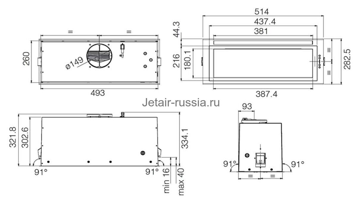 JetAir PLANE LUX BL/A/52 Вытяжка в подвесной шкаф
