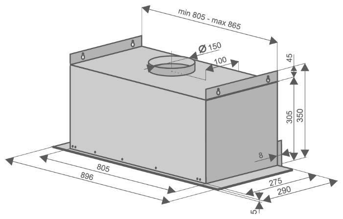 Описаниевытяжка встраиваемая в подвесной шкаф, 90 см, 1100 м3/ч, белый/белое стекло