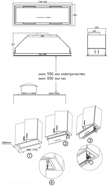 Описаниевытяжка встраиваемая в подвесной шкаф, 51,8 см, 950 м3/ч, бежевое стекло