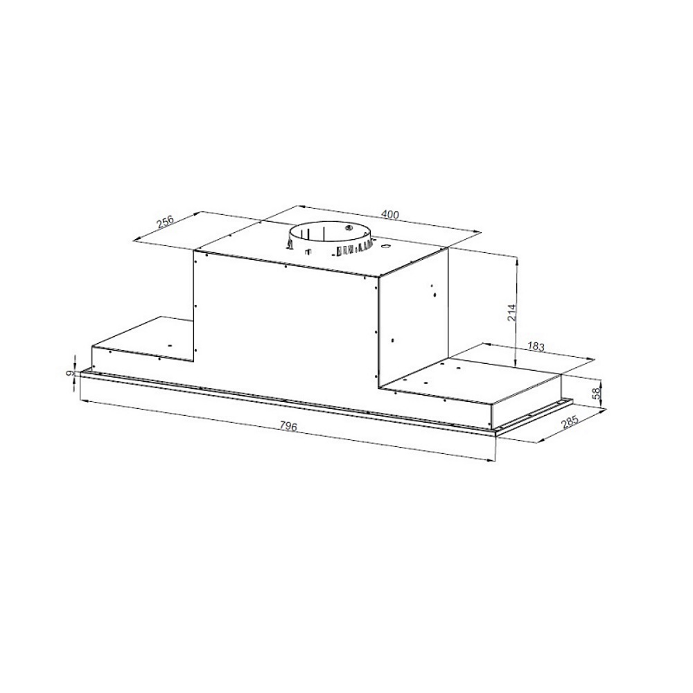 Описаниевытяжка встраиваемая в подвесной шкаф, 80 см, 800 м3/ч, черное стекло