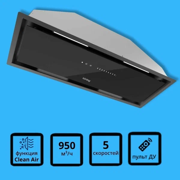Описаниевытяжка встраиваемая в подвесной шкаф, 80 см, 950 м3/ч, черное стекло