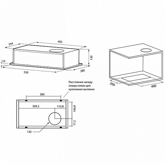 Описаниевытяжка встраиваемая в подвесной шкаф, 52 см, 550 м3/ч, нержавеющая сталь