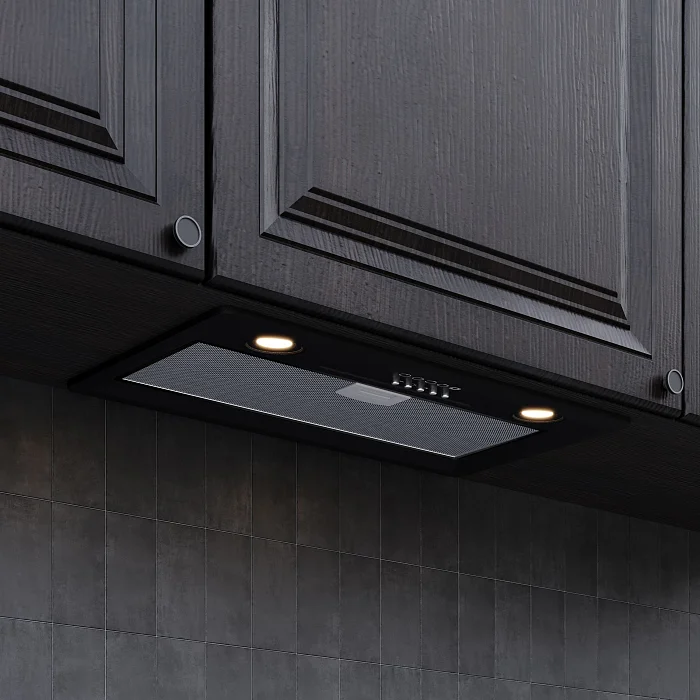 Описаниевытяжка встраиваемая в подвесной шкаф, 60 см, 640 м3/ч, черный