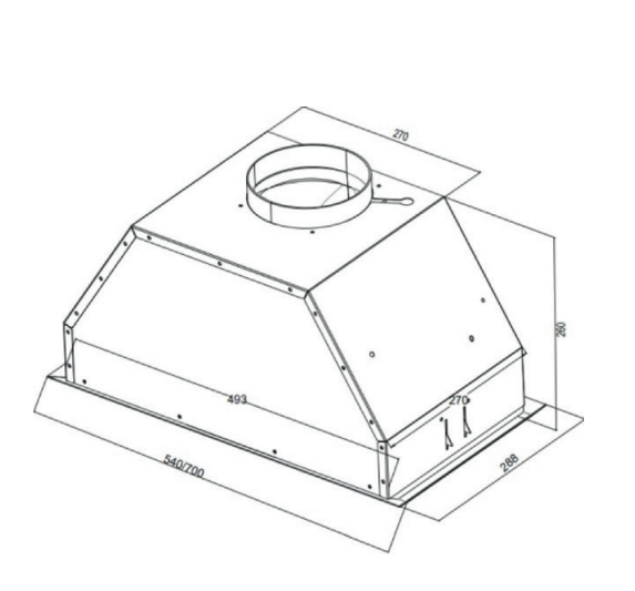 Описаниевытяжка встраиваемая в подвесной шкаф, 54 см, 1000 м3/час, нержавеющая сталь