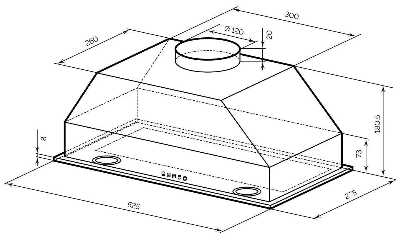 Описаниевытяжка встраиваемая в подвесной шкаф, 52,5 см, 700 м3/ч, слоновая кость