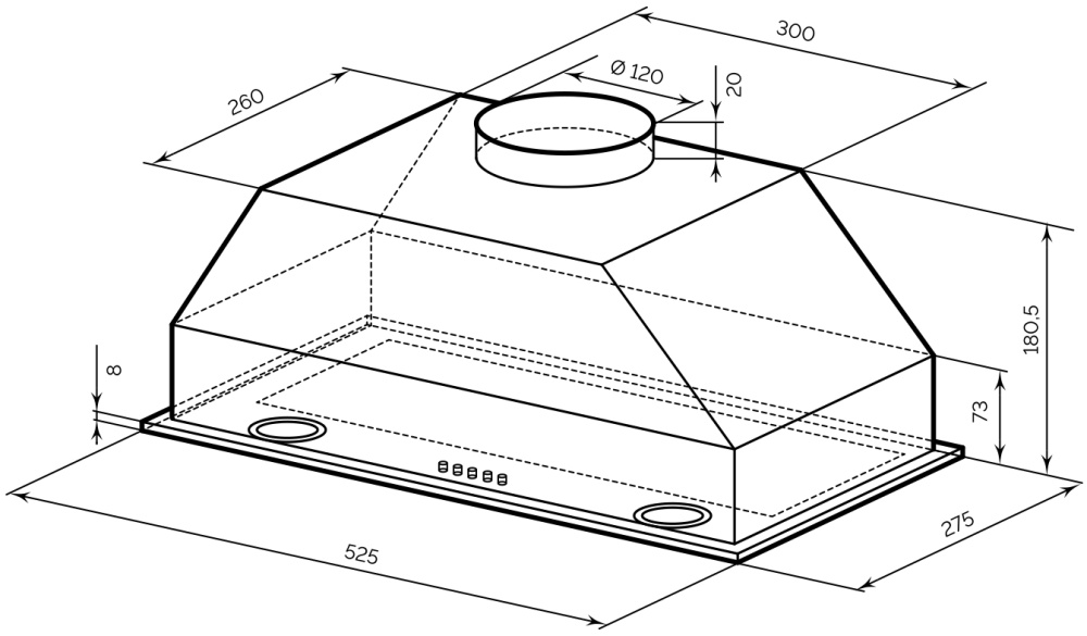 Описаниевытяжка встраиваемая в подвесной шкаф, 52,5 см, 700 м3/ч, белый