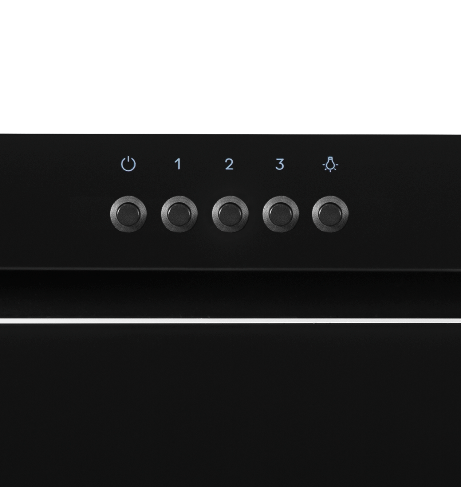 Описаниевытяжка встраиваемая в подвесной шкаф, 52 см, 850 м3/ч, черное стекло