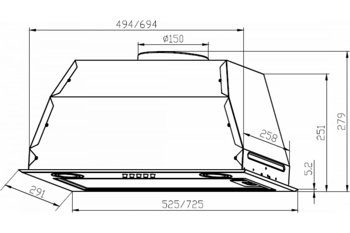 Описаниевытяжка встраиваемая в подвесной шкаф, 72,5 см, 1050 м3/ч, черный