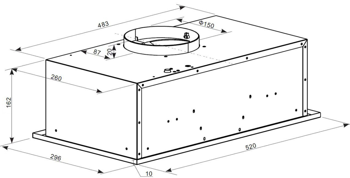 Описаниевытяжка встраиваемая в подвесной шкаф, 52 см, 700 м3/ч, бежевый