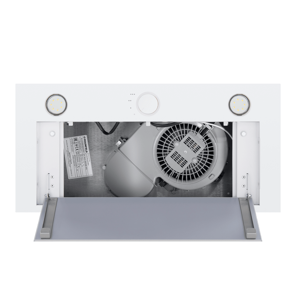 Описаниевытяжка встраиваемая в подвесной шкаф, 60 см, 750 м3/ч, белое стекло