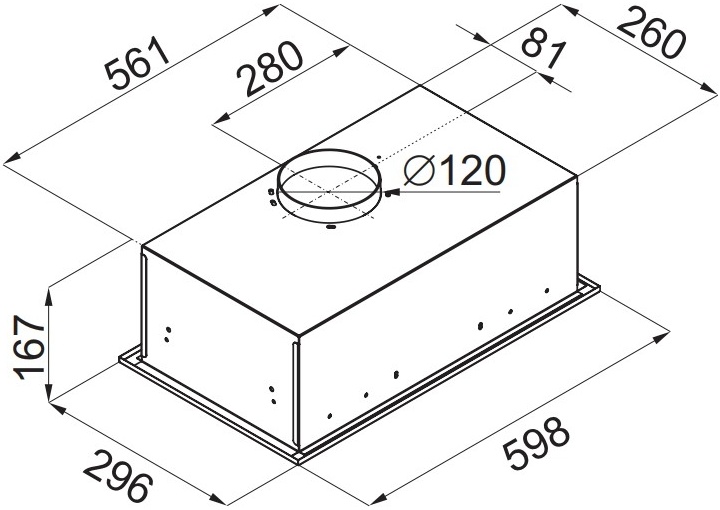 Описаниевытяжка встраиваемая в подвесной шкаф, 60 см, 850 м3/ч, черный