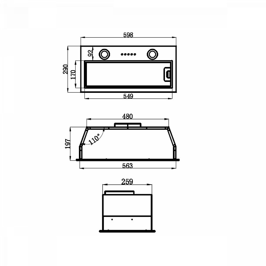 Описаниевытяжка встраиваемая в подвесной шкаф, 60 см, 520 м3/ч, черный