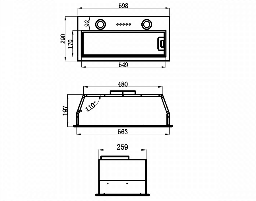 Описаниевытяжка встраиваемая в подвесной шкаф, 60 см, 850 м3/ч, нержавеющая сталь