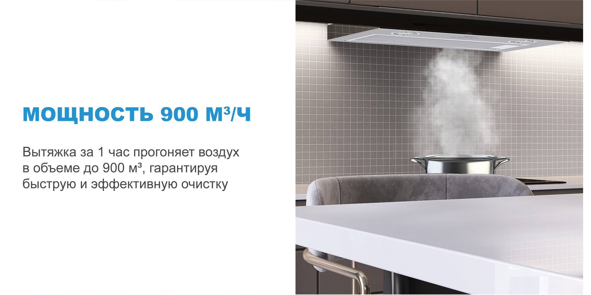 Описаниевытяжка встраиваемая в подвесной шкаф, 52 см, 900 м3/час, нержавеющая сталь