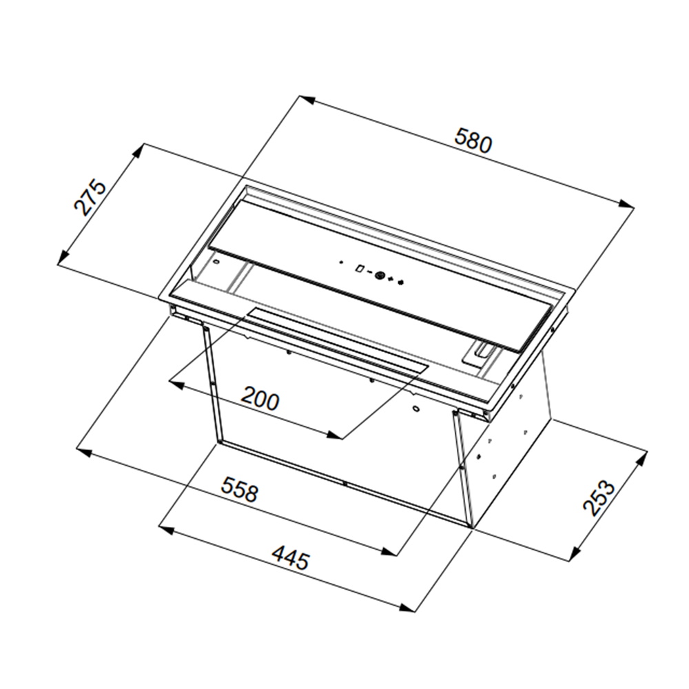 Описаниевытяжка встраиваемая в подвесной шкаф, 60 см, 1000 м3/ч, черный