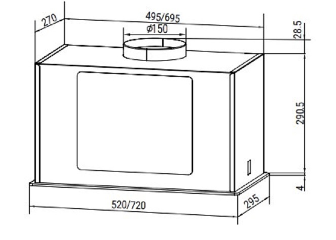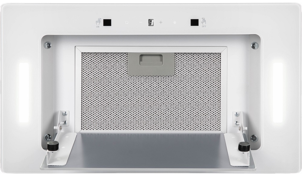Описаниевытяжка встраиваемая в подвесной шкаф, 52 см, 900 м3/ч, белое стекло