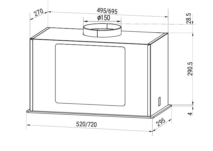 Описаниевытяжка встраиваемая в подвесной шкаф, 72 см, 900 м3/ч, черное стекло